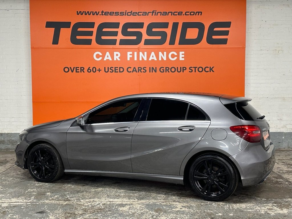JUST INTO OUR STOCK IS THIS MERCEDES-BENZ A-CLASS FINISHED IN MOUNTAIN GREY METALLIC, COMPLIMENTED BY BLACK ALLOY WHEELS AND THE BLACK AMG-STYLE GRILLE. THIS CAR COMES REALLY WELL EQUIPPED, WITH BLUETOOTH CONNECTIVITY, FULL BLACK LEAHTER UPHOLSTERY THROUGHOUT. YOU GET RAIN-SENSING WIPERS, AUTOMATIC HEADLIGHTS AND LOADS MORE BESIDES! IF YOU WOULD LIKE ANY MORE INFORMATION ON THIS CAR, OR IF YOU WOULD LIKE TO BOOK A TEST DRIVE, PLEASE DON'T HESITATE TO GET IN TOUCH WITH US ON 01642 909540, OR YOU CAN EMAIL US AT SALES@TEESSIDECARFINANCE.COM
