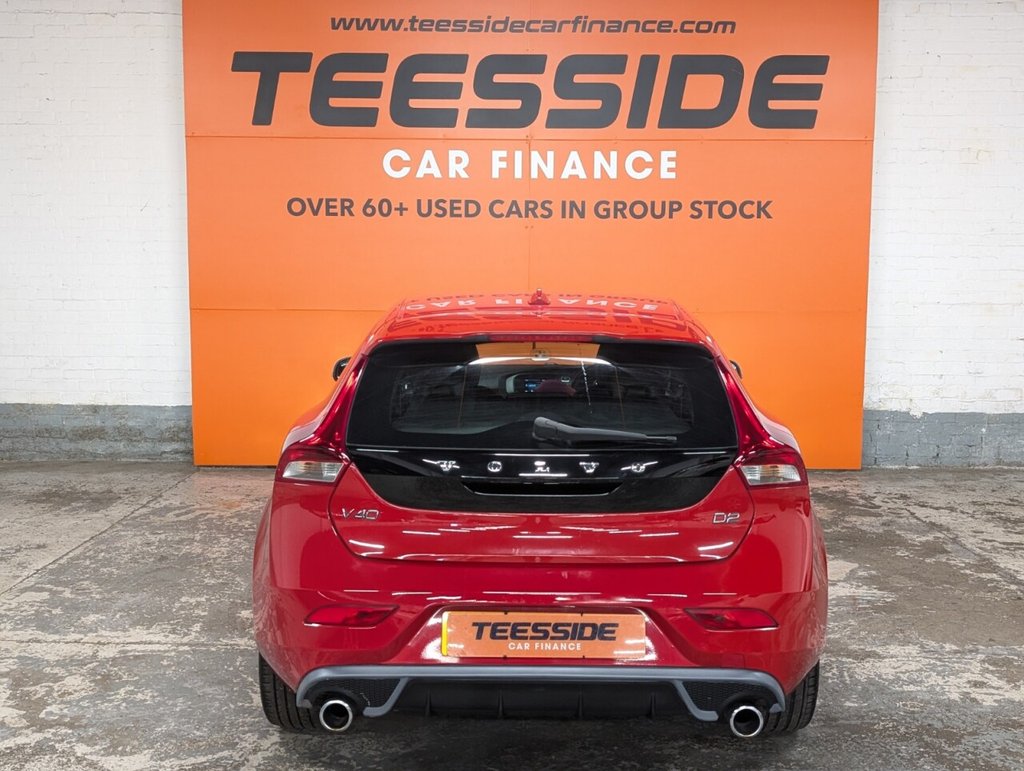 JUST INTO OUR STOCK IS THIS FANTASTIC SPEC VOLVO V40 R-DESIGN LUX, THIS IS THE D2 ENGINE, SO YOU GET THE BENEFIT OF FANTASTIC FUEL ECONOMY AS WELL AS COMPLETELY FREE YEARLY TAX! AS THIS IS THE R-DESIGN LUX, IT COMES REALLY WELL EQUIPPED! YOU GET FULL LEATHER UPHOLSTERY, DUAL-ZONE CLIMATE CONTROL, TWIN-EXIT EXHAUSTS, UPGRADED ALLOY WHEELS, BLUETOOTH CONNECTIVITY AND LOADS MORE! IF YOU WOULD LIKE ANY MORE INFORMATION, OR IF YOU WOULD LIKE TO BOOK A TEST DRIV, PLEASE DON'T HESITATE TO GET IN TOUCH WITH US ON 01642 909540, OR YOU CAN EMAIL US AT SALES@TEESSIDECARFINANCE.COM